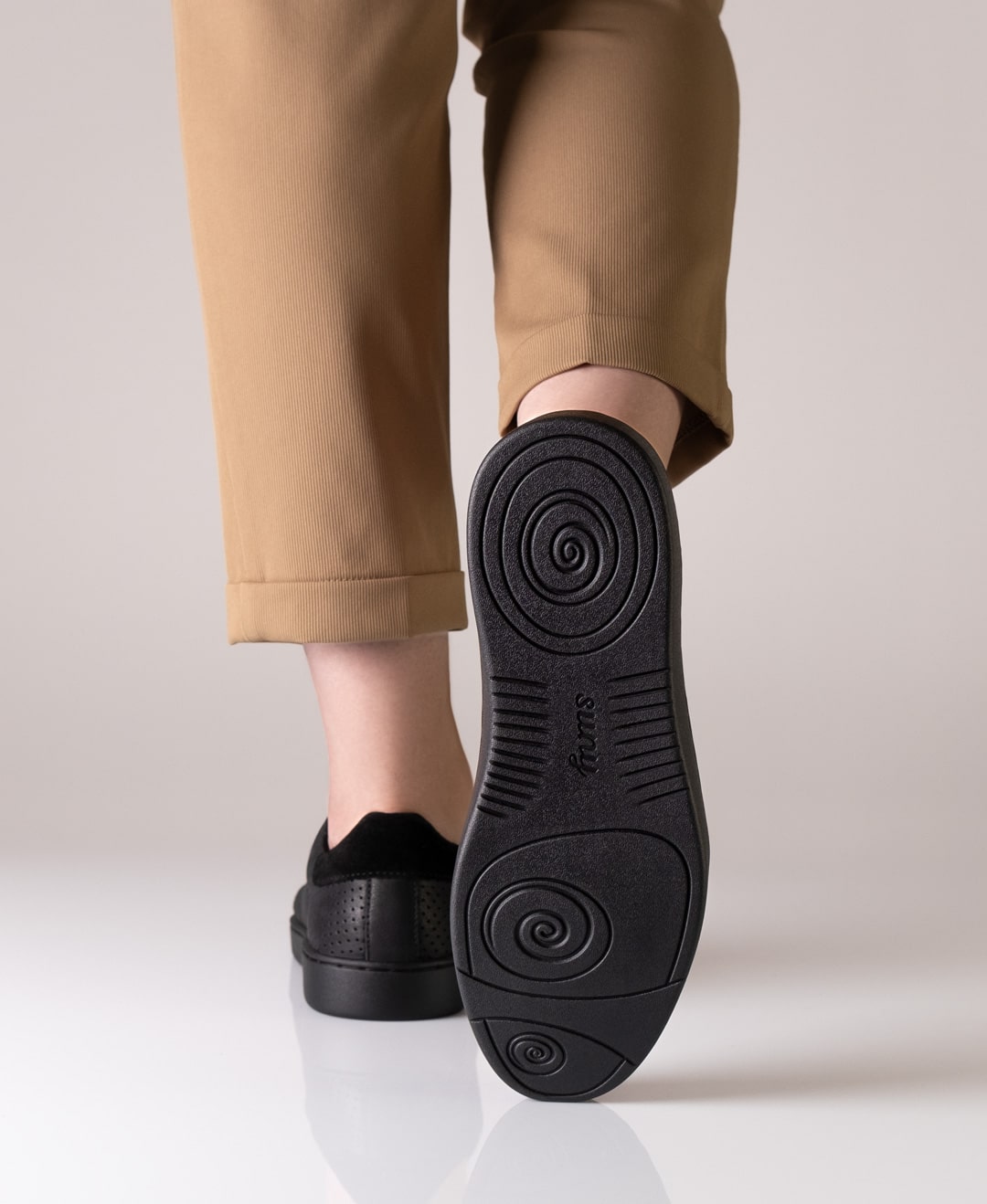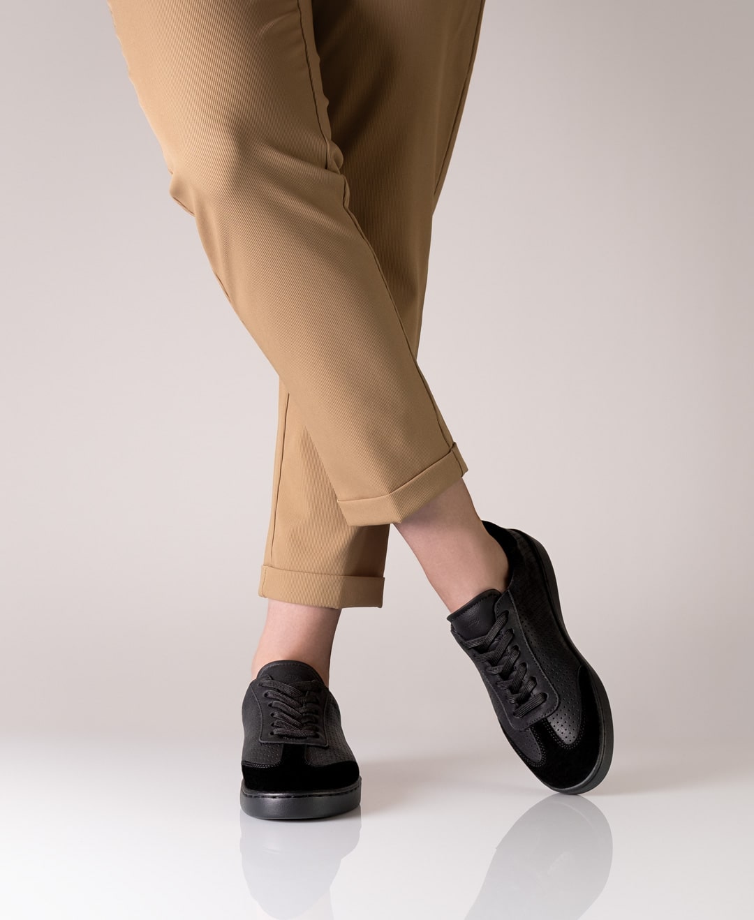 An essential women's dance sneaker with a full-length PU cupsole. This urban, lightweight sneaker from Suny enables effortless and precise spinning on all floors. Made from black, perforated nappa leather combined with fine suede, this exceptional sneaker adapts perfectly to the foot. The newly developed, leather-covered and removable insole provides excellent support and cushioning with every step. With its stylish, all-black design, the Suny 7030 is not only a real eye-catcher, but also the perfect companion for any dance evening - both indoors and outdoors.