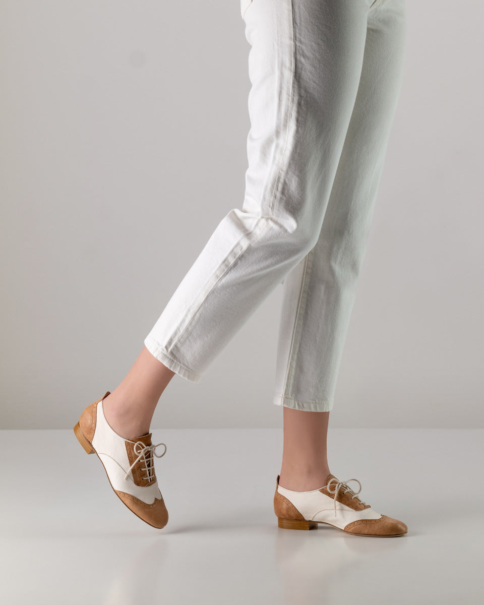 Your dancing companion for the whole evening. Super soft oxford ladies' dance shoe made of sustainably tanned goatskin. The shoe has a comfortable width and offers perfect and secure hold due to the 4-hole lacing. Due to its special processing, the item is extremely flexible and comfortable.