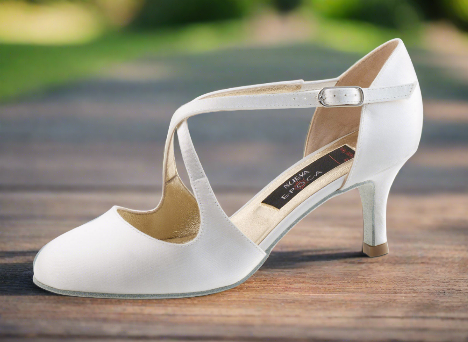 A classic Nueva Epoca dancing shoe by Werner Kern with optimum and secure wear comfort with the individually adjustable crossed instep and heel straps. Perfect and elegant.