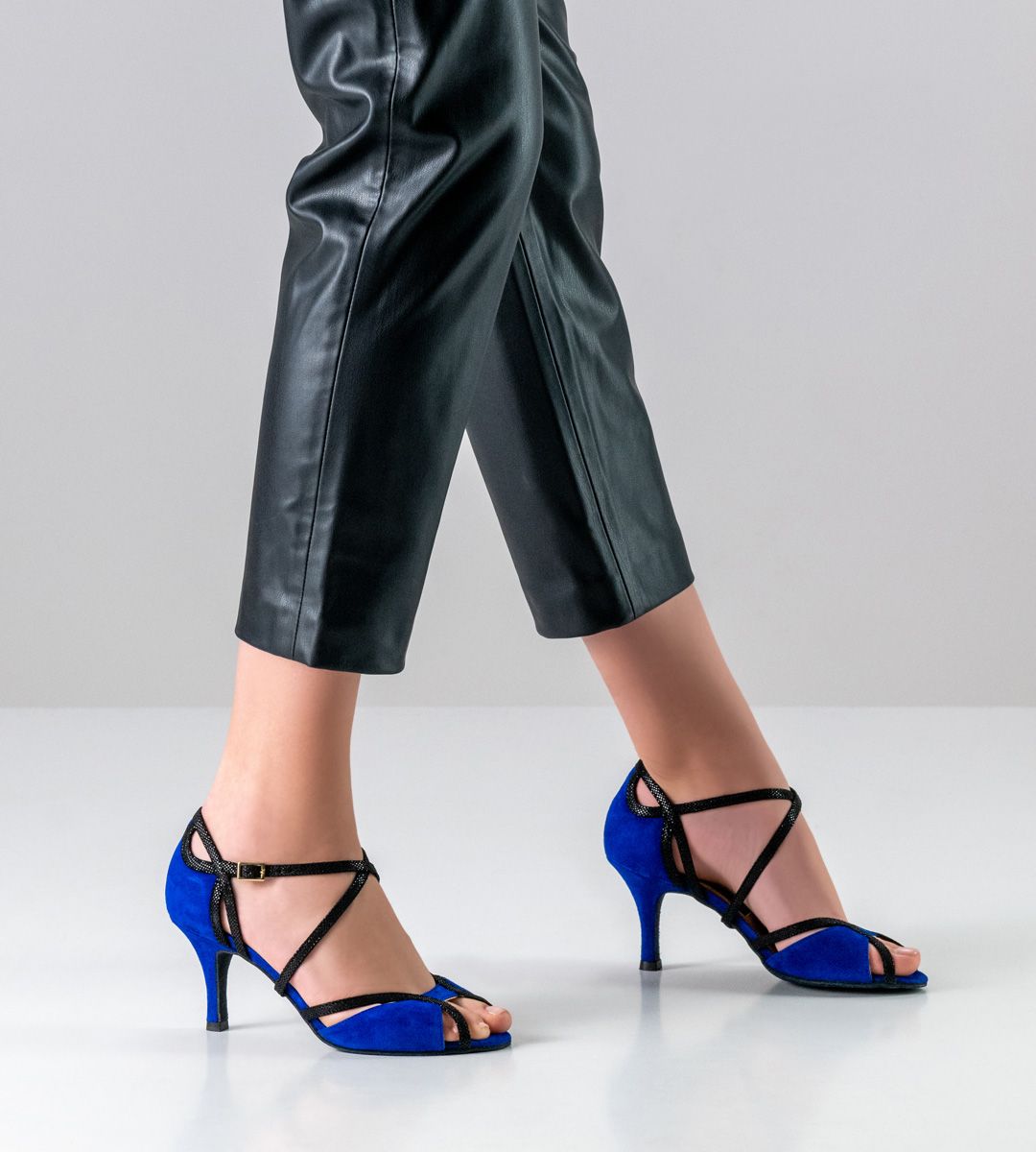 Spirited Nueva Epoca dance shoe by Werner Kern in fashionable indigi blue. The breaks in the heel and in the forefoot area make this shoe particularly light and lively. The cross straps, which can be individually adjusted both under the sole and on the heel, guarantee a perfect fit and exceptional fit.