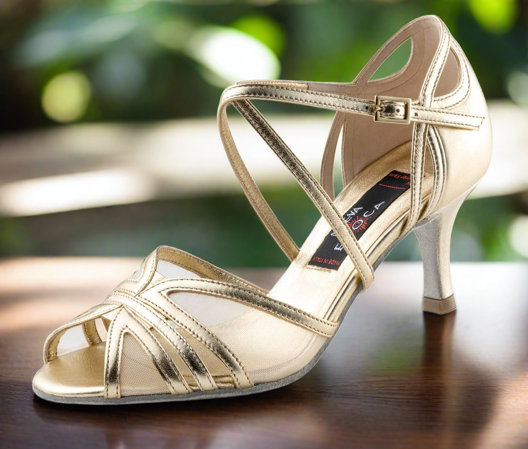 Refined and extremely comfortable Nueva Epoca dance shoe. Filigree interruptions ensure optical lightness and are lined with fine mesh. The seductive, individually adjustable instep strap guarantees a comfortable and secure hold.