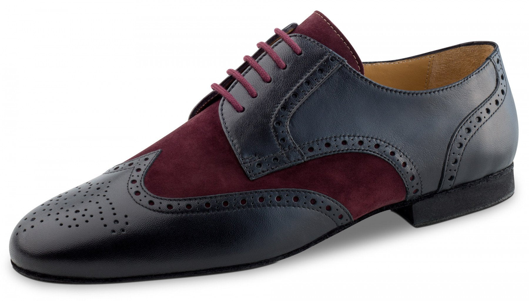 Classic-elegant Werner Kern men's dance shoe in a precious nappa and suede leather. The hand-braided wing cap gives this shoe its stylish appearance. Its comfortable 5-hole lacing provides an optimally stable and comfortable fit and foothold. The shoe is lined with soft glove-quality calfskin.