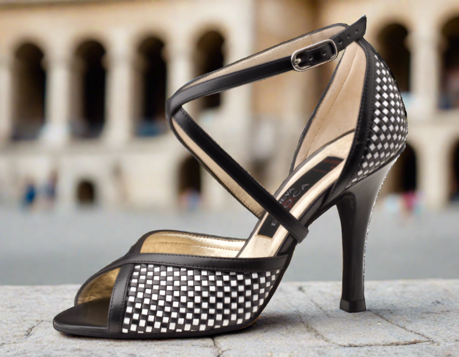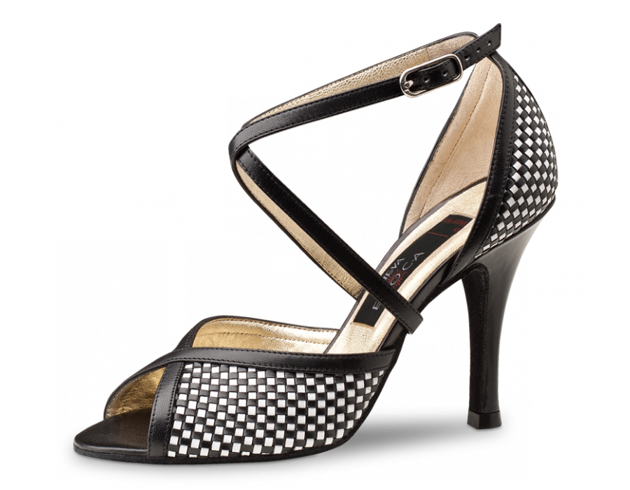 Sultry Nueva Epoca dancing shoe by Werner Kern in classic colours. The individually adjustable crossed instep and heel straps below the sole and at the heel offer an exceptional and comfortable fit.
