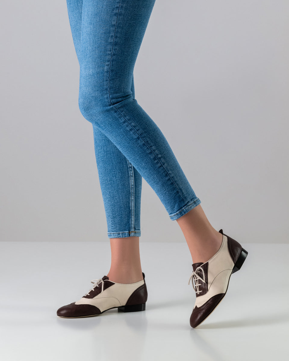 Your dancing companion for the whole evening. Super comfortable ladies' oxford dance shoe made of soft suede and patent leather. The shoe has a comfortable width and offers perfect and secure hold due to the 4-hole lacing. Due to its special processing, the item is extremely flexible and comfortable.