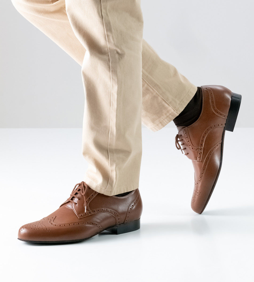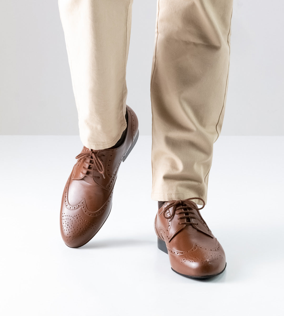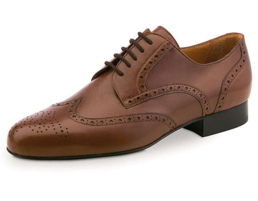 Classic-elegant Werner Kern men's dance shoe in a precious nappa leather. The hand-braided wing cap gives this shoe its stylish appearance. Its comfortable 5-hole lacing provides an optimally stable and comfortable fit and foothold. The shoe is lined with soft glove-quality calfskin.