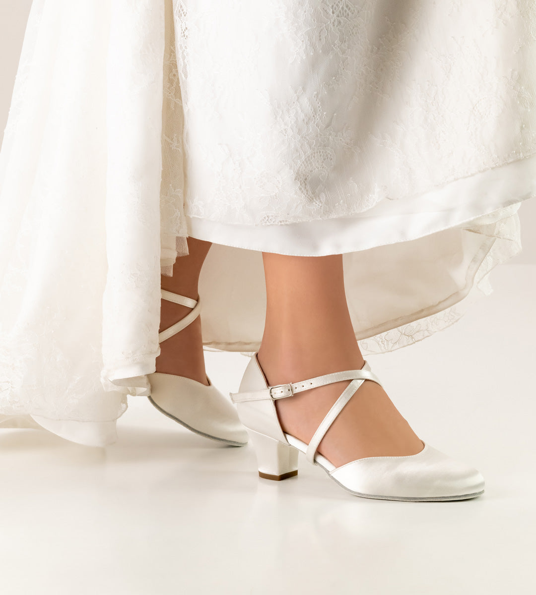 Ultra-comfortable Werner Kern dancing and bridal shoe with an enticing rounded front. The shoe has individually adjustable crossed instep and heel straps, offering a perfect and extremely comfortable fit.