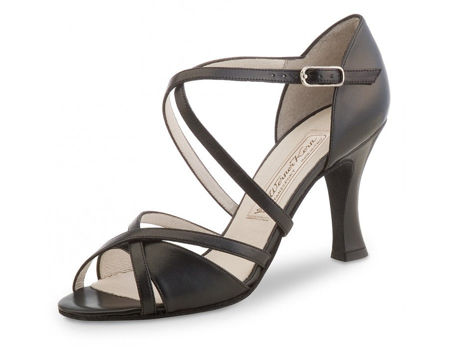 Timeless Werner Kern dancing shoe with perfectly fitting and elegant triple-leaf division. The shoe has individually adjustable crossed instep and heel straps beneath the sole as well as at the heel, offering a perfect and extremely comfortable fit.