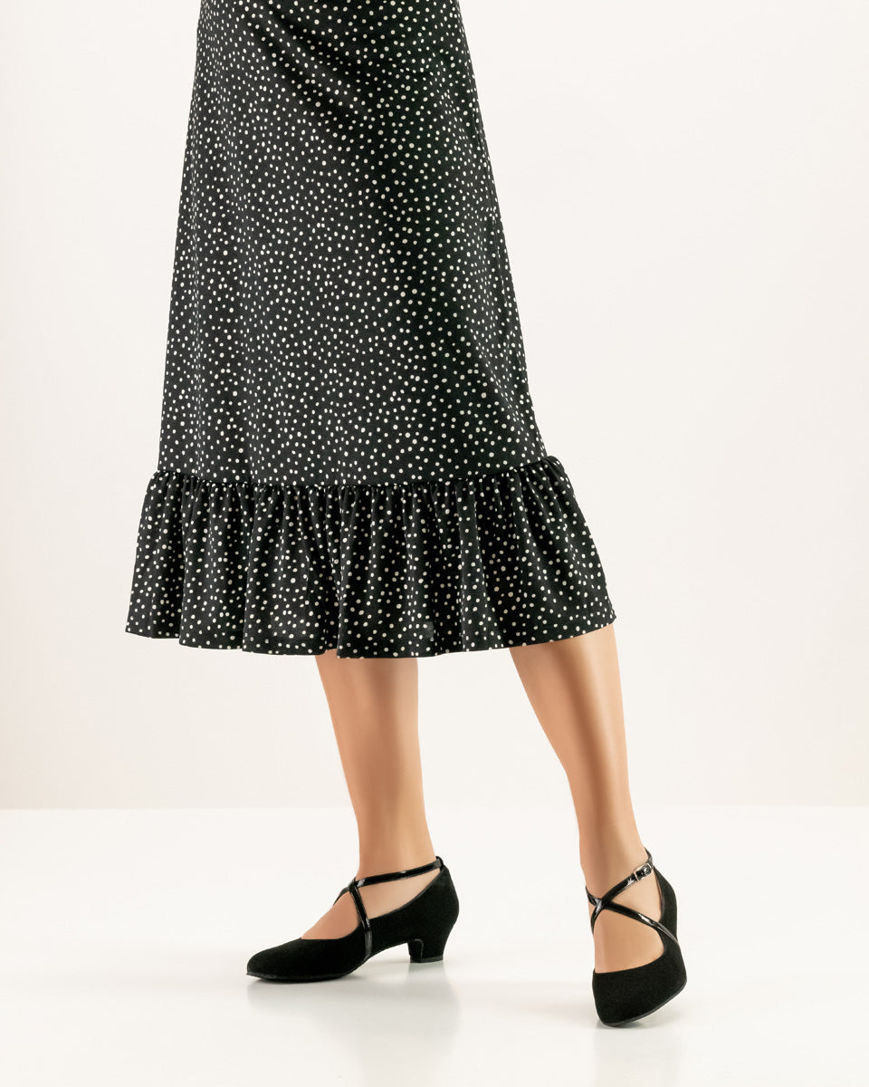 Ultra-comfortable Werner Kern dancing shoe with enticing décolletage cut. The individually adjustable crossed instep and heel strap offers an optimal and stable fit.