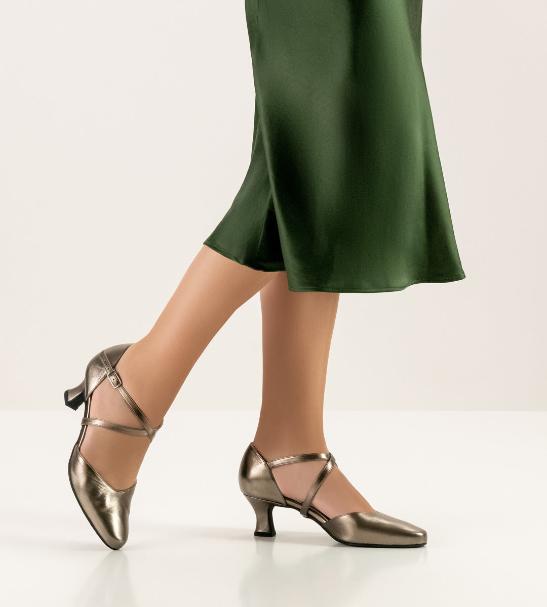 Ultra-comfortable Werner Kern dancing shoe with feminine rounded front. The individually adjustable crossed instep and heel straps below the sole and at the heel offer a perfect and extremely comfortable fit - a classic.