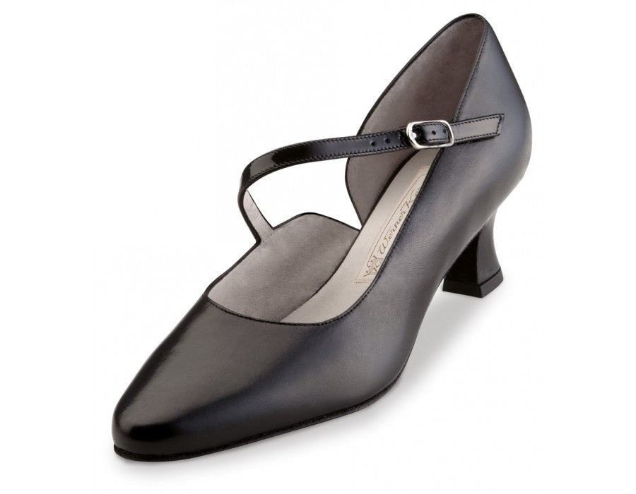 Wonderfully comfortable dancing shoe by Werner Kern with an enticing décolletage cut. The almost closed form offers optimum fit and the necessary flexibility. The individually adjustable heel strap rounds off the form and set a fashionable accent with its transversal direction.