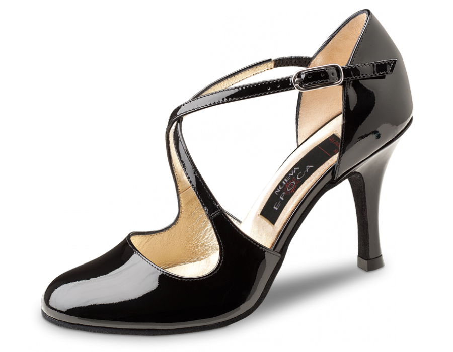 A classic Nueva Epoca dancing shoe by Werner Kern with optimum and secure wear comfort with the individually adjustable crossed instep and heel straps. Perfect and elegant.