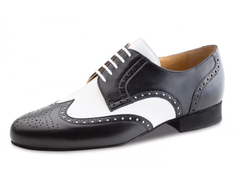 Classic-elegant Werner Kern men's dance shoe in a precious nappa leather. The hand-braided wing cap gives this shoe its stylish appearance. Its comfortable 5-hole lacing provides an optimally stable and comfortable fit and foothold. The shoe is lined with soft glove-quality calfskin.
