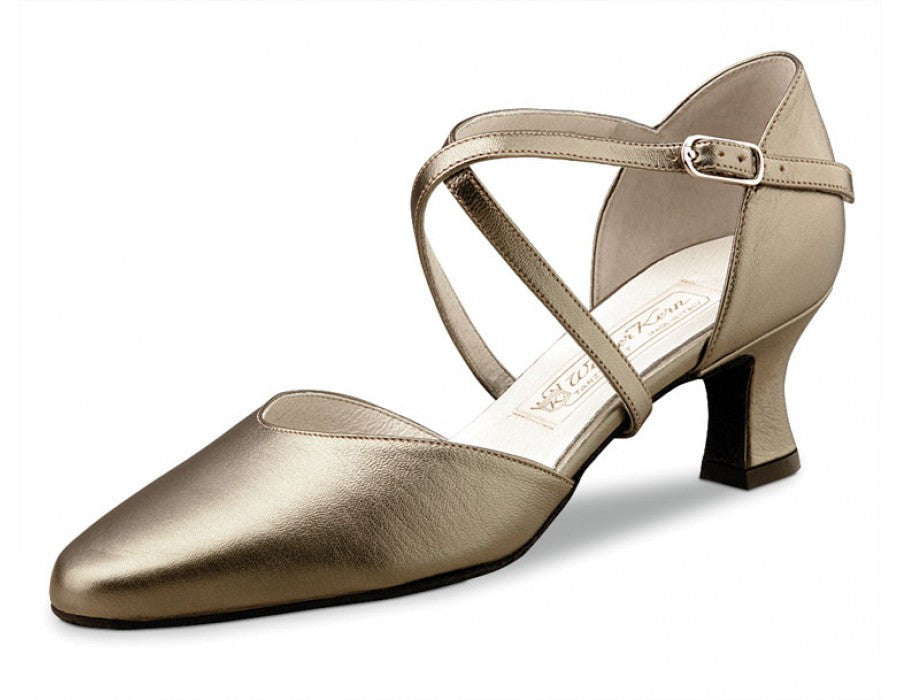 Ultra-comfortable Werner Kern dancing shoe with feminine rounded front. The individually adjustable crossed instep and heel straps below the sole and at the heel offer a perfect and extremely comfortable fit - a classic.